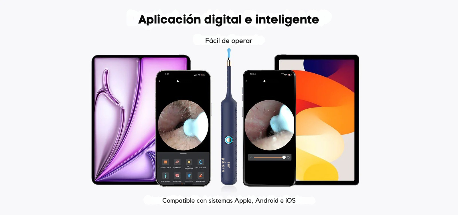 No necesitas ser un profesional para usarlo: solo tienes que seguir la guía en pantalla y disfrutar de una experiencia sin complicaciones. Además, gracias a su enfoque suave, es adecuado para todos, incluso si nunca has usado una cámara de limpieza de oídos.