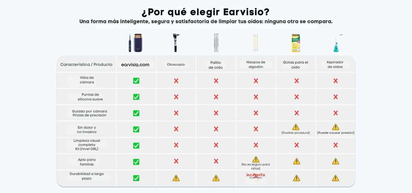 Con Earvisio, olvídate de los bastoncillos de algodón poco seguros y de visitas innecesarias: consigue una limpieza profunda, control total y tranquilidad para tu salud auditiva.